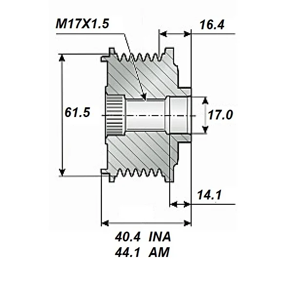 Frigående remskive 17x65,5x43,3, 6spår, FW 17 x 65,5 x 43,3 mm Alternativ: 45-182-2516 + afstandsbrættet 39-904-0010