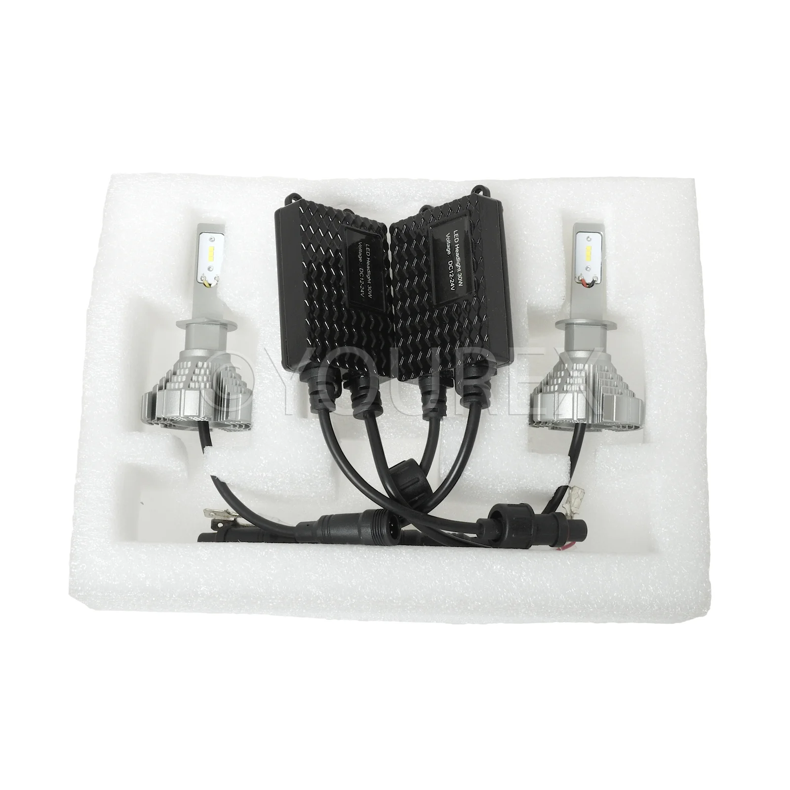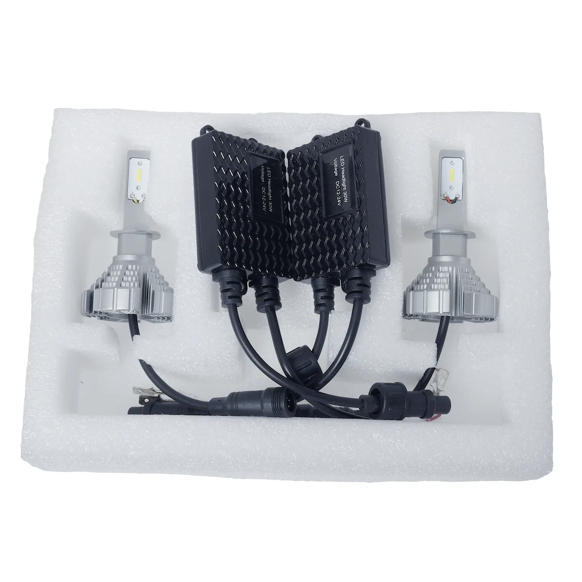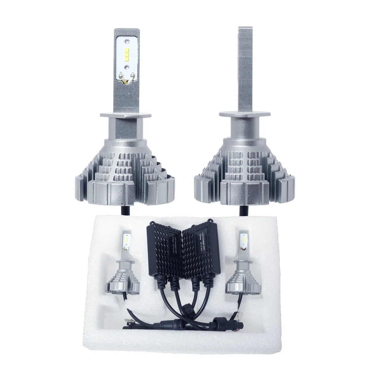 H1-LED Konverteringssæt Lampsockel H1, Volt 12V/24V, (2.0A +/- 0.2A) H1-LED Konverteringssæt. LED-chip Mærke: CSP Seoul, Kobber PCP. Indgang: pr. lampe (A) 1,25A +/- 0,2A, Volt 12V/24V. Watt: pr. lampe 15 watt, Lumen: pr. lampe 2500lm (5000lm i alt pr. KITS). Farve: 6500K, EMC beskyttet. Ikke Goodkendt til brug i trafik!