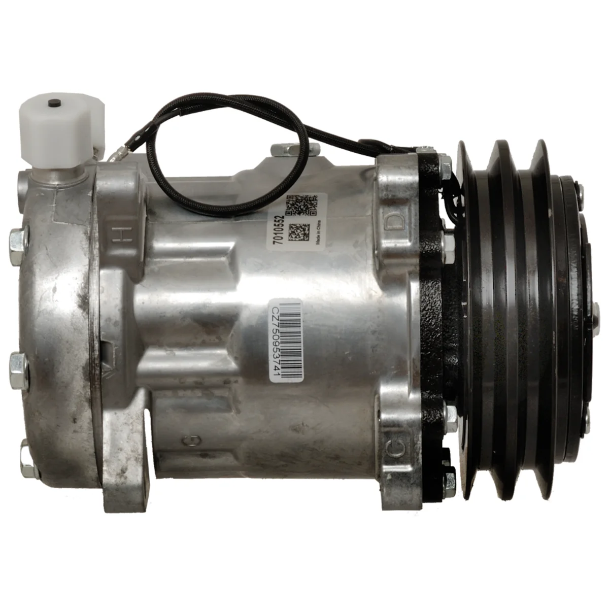 A/C Kompressor, Claas/Krone 12V, Remskive YD 132mm, 2 spor, 8 fastgørelseshuller Olievolumen: 135ml, PAG 100 Remskive UD 132mm, 2 spor, 8 fastgørelseshuller Olievolumen: 135ml